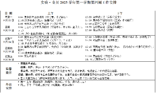 2025学年度第一学期第4周工作安排