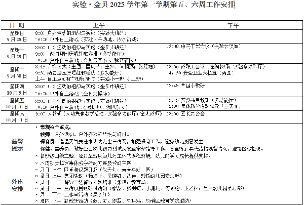 2025学年度第一学期第5、6周工作安排